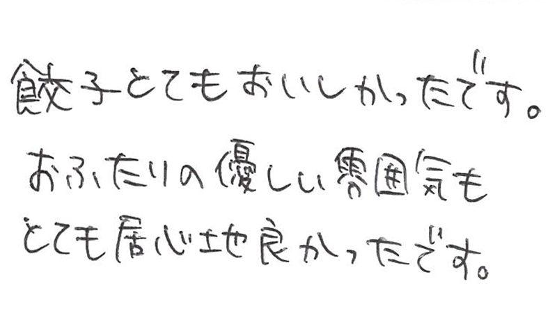 - お客様の声|ゆきさま「ぎょうざとっても美味しかったです」