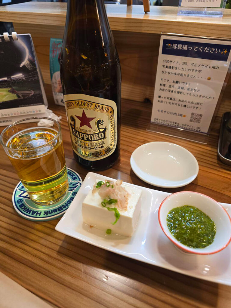 モモタロは、ホークスファンの店主が運営する餃子居酒屋です。