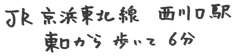 | 住所 | 〒332-0034 埼玉県川口市並木3-21-1 重光コーポ1階 ・JR京浜東北線 西川口駅 東口から徒歩6分 ・JR京浜東北線 蕨駅 東口から徒歩21分 |