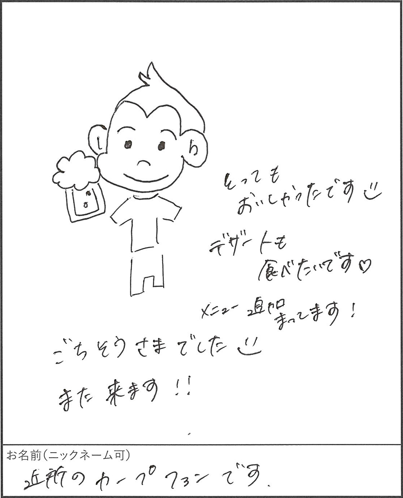 「とってもおいしかった」とのお言葉、とても励みになります。