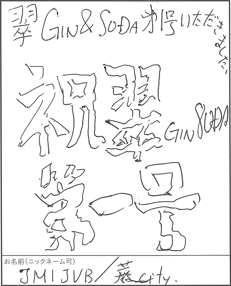 「祝・翠ジンソーダ第1号!」と書かれた記念メッセージ