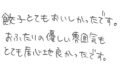 かわいい餃子のイラストとともに、「とっても美味しかったです」と書いていただき、心が温かくなりました。